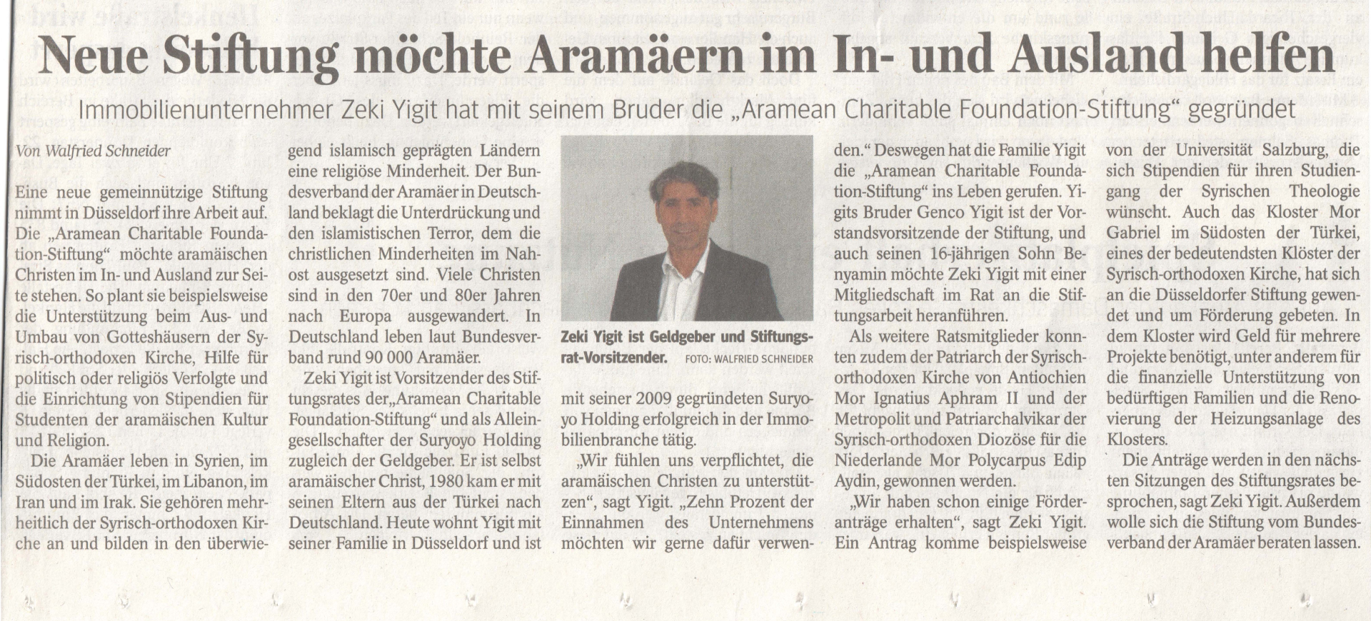 17.06.2017: Neue Rhein/Neue Ruhr Zeitung - Neue Stiftung möchte Aramäern im In- und Ausland helfen